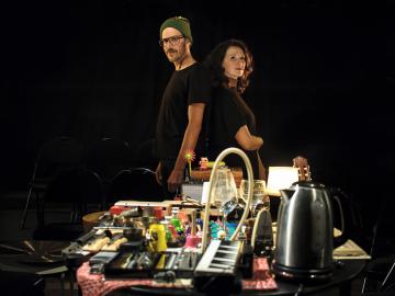 Imaginez Claire Diterzi assise, là, tout près de vous. Imaginez un établi rempli de clochettes, grelots, verres en cristal, boîtes à musique, bouilloire électrique et autres objets du quotidien, venir rejoindre les instruments sortis de la malle musicale de Stéphane Garin, étonnant Géo Trouvetou et professeur Tournesol de la musique contemporaine. L’art du duo s’exerce alors ici avec une créativité jubilatoire pour un concert infiniment petit, convivial et intime, qui rejoue et déjoue des morceaux choisis du répertoire de Claire Diterzi.